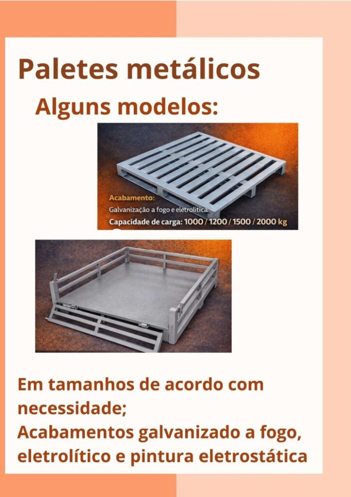 Os paletes em aço galvanizado são uma solução moderna e altamente resistente para armazenagem e logística. Fabricados com aço revestido por uma camada de zinco, eles oferecem excelente proteção contra corrosão, sendo ideais para ambientes úmidos, câmaras frias e áreas externas.
