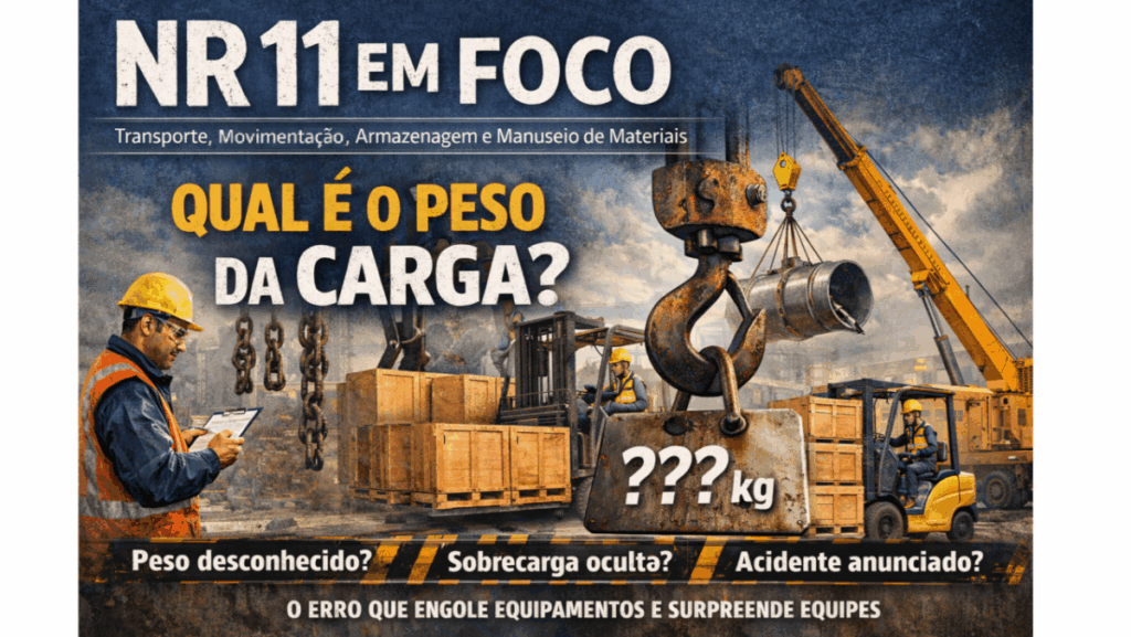 A NR 11 estabelece que a movimentação deve ocorrer dentro dos limites dos equipamentos e em condições seguras. Isso só é possível quando o peso da carga é conhecido de forma confiável.